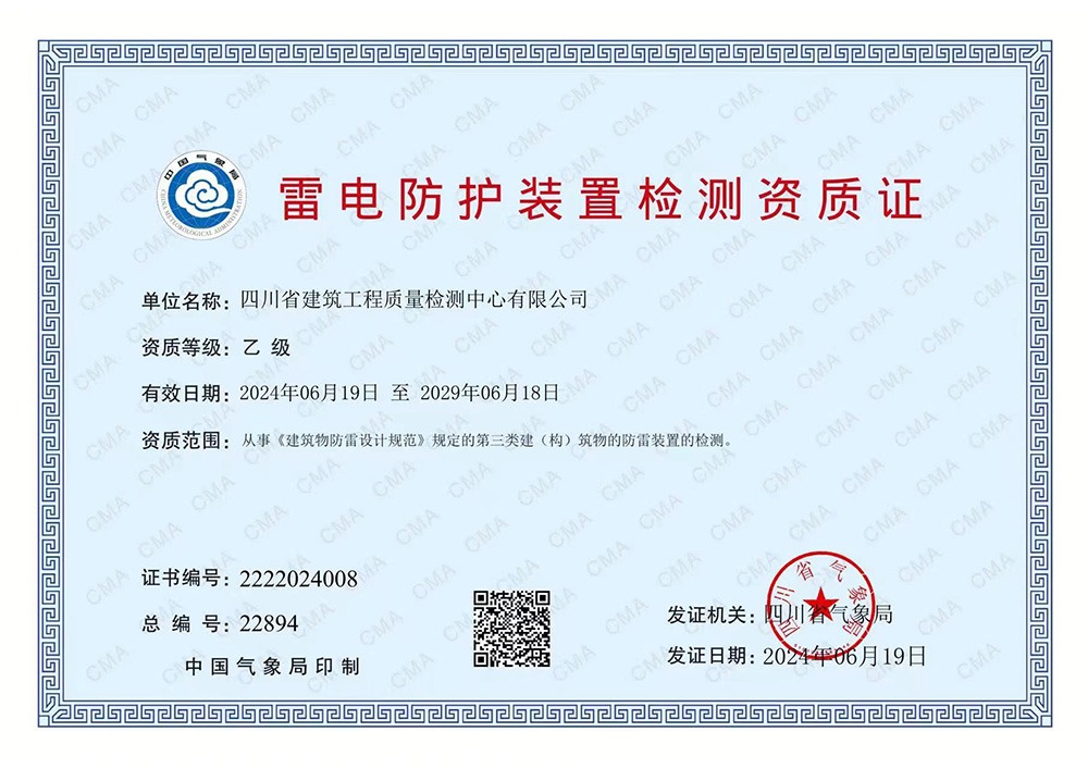 喜報|檢測中心取得防雷裝置檢測乙級資質